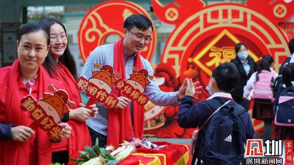 湖貝小學的老師及家長代表為學生送上寓意美好的新春祝福。