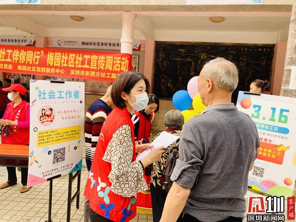 見(jiàn)圳客戶端· 深圳新聞網(wǎng)3月16日訊(記者 郭含笑 實(shí)習(xí)生 覃鈺清 通訊員 李珍鳳 張亮亮)為進(jìn)一步提高社會(huì)工作的影響力,樹(shù)立社會(huì)工作專業(yè)形象,3月16日下午,深圳市清水河街道梅園社區(qū)黨委、深圳市東西方社工服務(wù)社駐梅園社區(qū)黨群服務(wù)中心的社工開(kāi)展了“幸福梅園 社工伴你同行”社工宣傳周活動(dòng)。