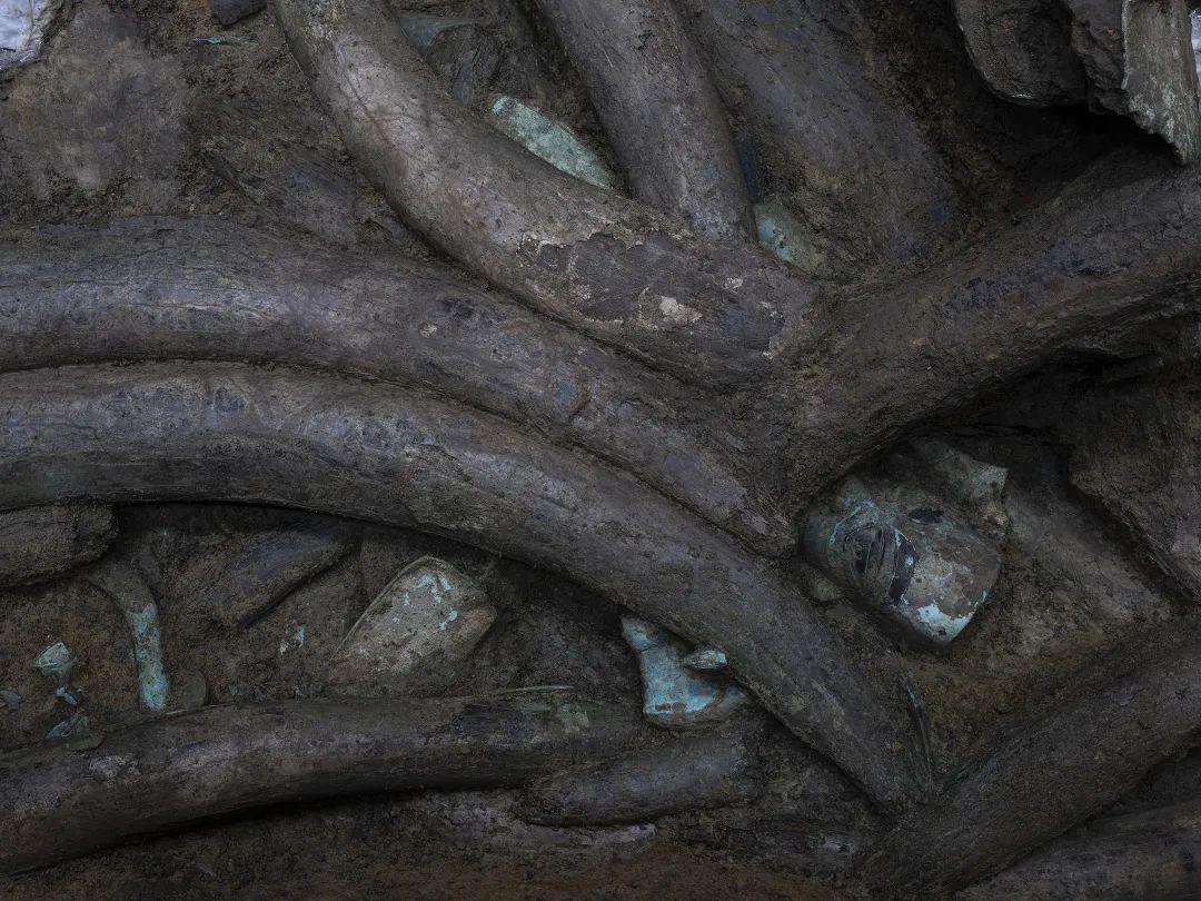 目前,三星堆遺址考古工作正在進(jìn)行中,新發(fā)現(xiàn)的六個“祭祀坑”已發(fā)掘至器物層,出土金面具殘片、鳥型金飾片、金箔、眼部有彩繪銅頭像、巨青銅面具、青銅神樹、象牙、精美牙雕殘件、玉琮、玉石器等重要文物。