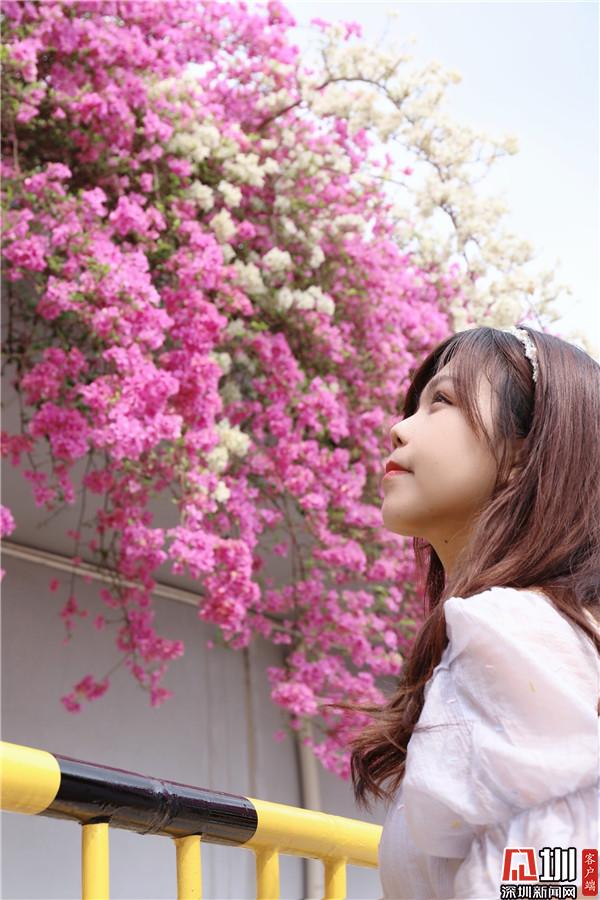 三月末,春深處,粉紫色的花朵環(huán)繞著停車場(chǎng)肆意綻放,與深圳藍(lán)相映成趣。