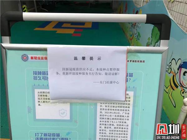 見圳客戶端·深圳新聞網(wǎng)4月7日訊(記者 彭桂紅 劉晨)“因新冠疫苗供應(yīng)不足,本接種點暫停服務(wù),重新開放接種服務(wù)另行告知。敬請諒解!——東門社康中心?!?月6日,記者在羅湖區(qū)東門社康中心看到,該社康貼出了疫苗暫時供應(yīng)不足的告知。記者隨后走訪了其他幾個接種點,一些社康也紛紛貼出了類似溫馨提示。記者了解到,除羅湖外,其他區(qū)的接種點也出現(xiàn)了類似“缺苗”現(xiàn)象。對此,記者采訪了羅湖區(qū)衛(wèi)健局,相關(guān)負(fù)責(zé)人表示,這段時間轄區(qū)新冠病毒疫苗接種率大幅提升,目前缺苗只是暫時性的,正在加強調(diào)配,隨時可能到苗,請大家耐心等待,同時留意相關(guān)提示。
