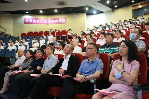 隨后,孫喜琢院長就醫(yī)院護理的現(xiàn)狀及未來護理的發(fā)展方向作出了展望。孫喜琢說:“從去年抗擊疫情到現(xiàn)在,已歷時一年多時間。我們一直沒有松懈。從口岸篩查、核酸采樣、疫苗接種……很多今天沒來參加活動的護士們正奮戰(zhàn)在40多個疫苗接種點。抗疫的同時,醫(yī)院日常的醫(yī)療工作還要正常展開,大家踐行著南丁格爾愛心、耐心、細心、責任心的護理精神完成了護理工作。”