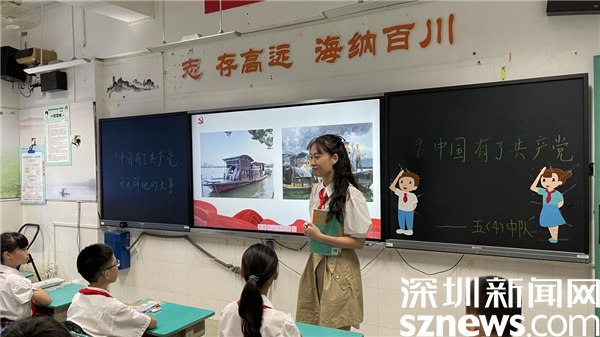 6月16日上午,記者走進(jìn)深圳市螺嶺外國語實驗學(xué)校,教室里的老師正生動地講述中國共產(chǎn)黨的光輝歷程,通過一張張珍貴的歷史圖片、一段段刻骨銘心的歷史故事,引領(lǐng)同學(xué)們共同追尋紅色記憶、感懷革命精神。