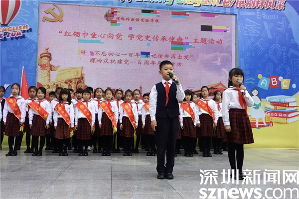 據(jù)了解,深圳市螺嶺外國語實驗學(xué)校從2020年10月就持續(xù)開展形式多樣的黨史學(xué)習(xí)教育進(jìn)校園,其中包含“大手拉小手、黨史進(jìn)課堂”黨員教師宣講黨史隊會課、“紅領(lǐng)巾童心向黨,學(xué)黨史傳承使命”全體師生升旗課程、“大手拉小手、共學(xué)黨隊史”大隊委宣講黨史隊史隊知識等。