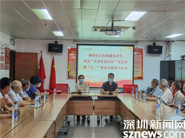 讀特客戶端·深圳新聞網(wǎng)2021年6月30日訊(記者 郭含笑 通訊員 陳秋珊 紀(jì)楚苗)為進(jìn)一步加強(qiáng)和體現(xiàn)黨組織對黨員的關(guān)心與愛護(hù),在中國共產(chǎn)黨百年華誕來臨之際,6月30日下午,深圳市羅湖區(qū)清水河街道梅園社區(qū)黨委在黨群服務(wù)中心二樓會議室舉行慶祝建黨百年頒發(fā)“光榮在黨50年”紀(jì)念章暨“七一”慰問主題黨日活動。