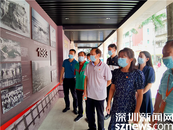 會(huì)后,吳愛華一行到紅崗西村廣場參觀了改造后的文化長廊,在老兵們的介紹下,吳愛華深刻感受到了老兵們當(dāng)年為深圳建設(shè)無私奉獻(xiàn)的愛國之情。她表示,文化長廊真正將深圳基建工程兵這個(gè)群體的拓荒史和不怕苦、不怕累、頑強(qiáng)拼搏、勇于奮斗的“拓荒?!本裾故镜昧芾毂M致。