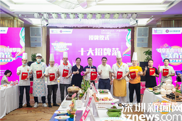 活動現(xiàn)場,外婆生煎蝦餅、海膽汁焗龍蝦、竹笙馬蹄椰子雞等42道色香味俱全的佳肴輪番上陣,廚師長各自介紹菜品特色和背后故事,加深活動群眾對中華飲食文化的了解。同時,由行業(yè)資深專家組成的評審委員會對參賽作品的口味與質(zhì)感、工藝與火候、創(chuàng)意與實(shí)用、形態(tài)與色澤、營養(yǎng)衛(wèi)生安全等綜合評定打分,最終評選出羅湖十大招牌菜為外婆生煎蝦餅、竹笙馬蹄椰子雞、鴛鴦海中寶、黑胡椒焗波士頓龍蝦、膏蟹基圍蝦砂鍋粥、手工熟牛肉丸、六星燒腩骨、石斛活遼參湯、頭抽浸脆鯇魚、金戈戈香港豉油雞,十大特色菜為三叔烤羅蝦、有機(jī)青稞富貴石榴球、剁椒千島湖有機(jī)魚頭、荷塘蝦趣、蒙式烤羊排、小炒黃牛肉、菊花煲雞湯、潮泰金牌濕炒牛河、姚姚酸菜魚、招牌海南粉,十大名廚為林榮飄、梁文添、區(qū)增貴、杜明福、茍亞強(qiáng)、袁杰軍、劉品繁、張志平、陳煜保、杜保坡。
