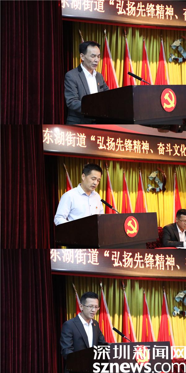 程時(shí)菊強(qiáng)調(diào),東湖街道上下要迅速掀起弘揚(yáng)先鋒精神、奮斗文化熱潮,推動(dòng)宣傳貫徹落地落實(shí)、會(huì)議精神入腦入心。要以十九屆六中全會(huì)精神為指引,緊密團(tuán)結(jié)在以習(xí)近平同志為核心的黨中央周圍,牢固樹立“四個(gè)意識(shí)”,堅(jiān)定“四個(gè)自信”,做到“兩個(gè)維護(hù)”,努力走在新時(shí)代前列、勇當(dāng)新征程尖兵。要深入學(xué)習(xí)領(lǐng)會(huì)羅湖區(qū)第八次黨代會(huì)精神,貫徹落實(shí)區(qū)委書記劉勝調(diào)研東湖街道的講話要求,創(chuàng)新機(jī)制、攻堅(jiān)克難、多措并舉,聚焦街道“1+6+6”總體工作安排部署,加快培育大梧桐新興產(chǎn)業(yè)帶,奮力打造“幸福街區(qū)、生態(tài)東湖”。