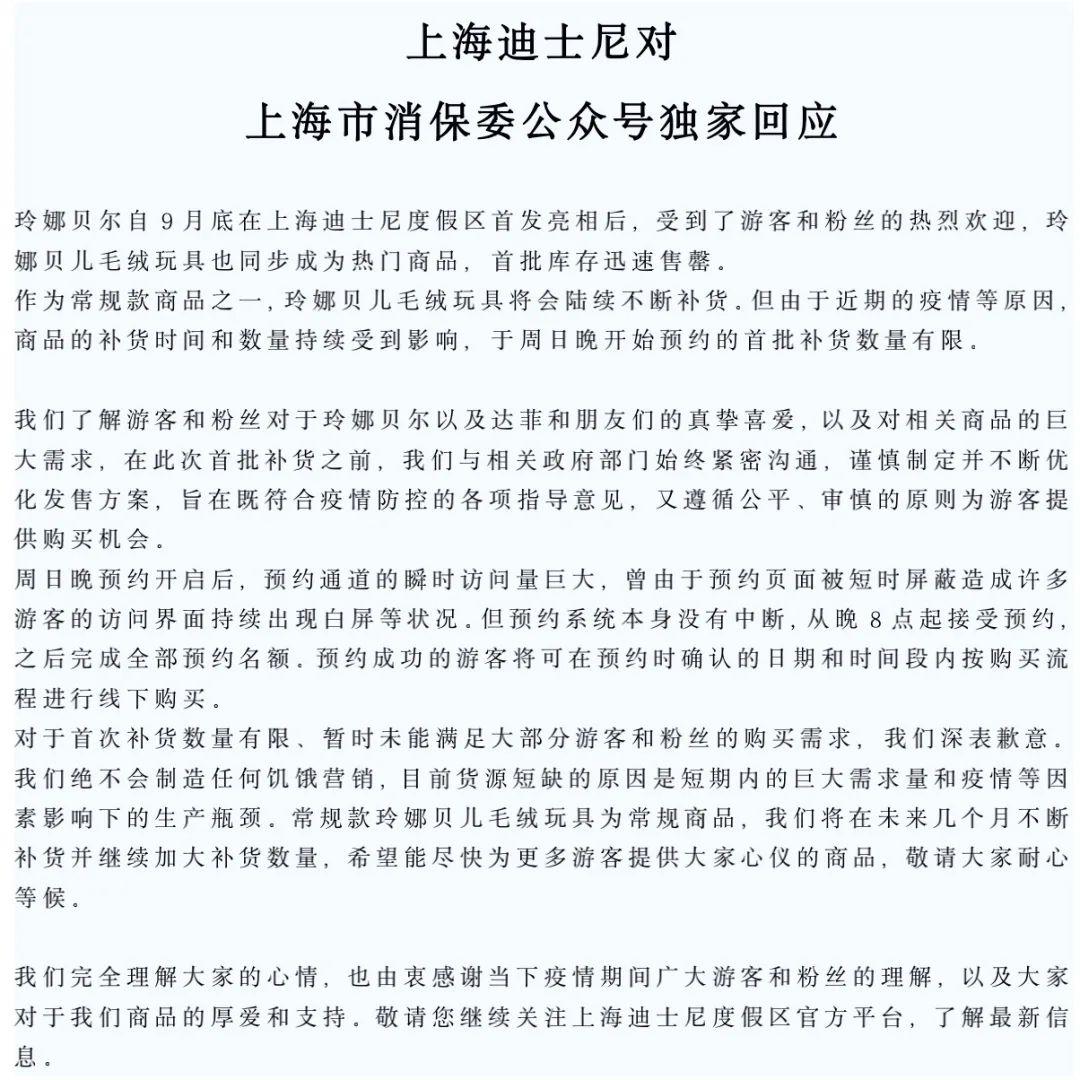 上海迪士尼回應(yīng):將加大補(bǔ)貨數(shù)量