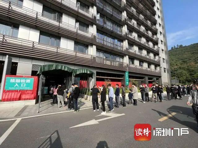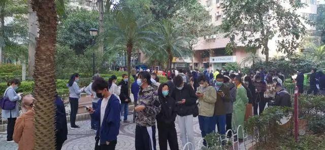 ▲坂田星河銀湖谷樓下也排起長長的核酸檢測隊(duì)伍,除了本地居民,人群里還有附近工地的建筑行業(yè)從業(yè)者、外賣小哥等。