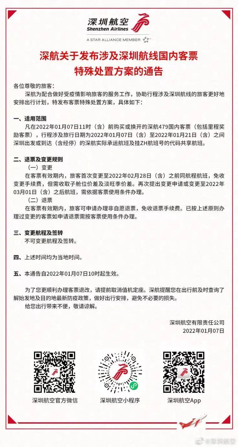 深航關(guān)于發(fā)布涉及深圳航線