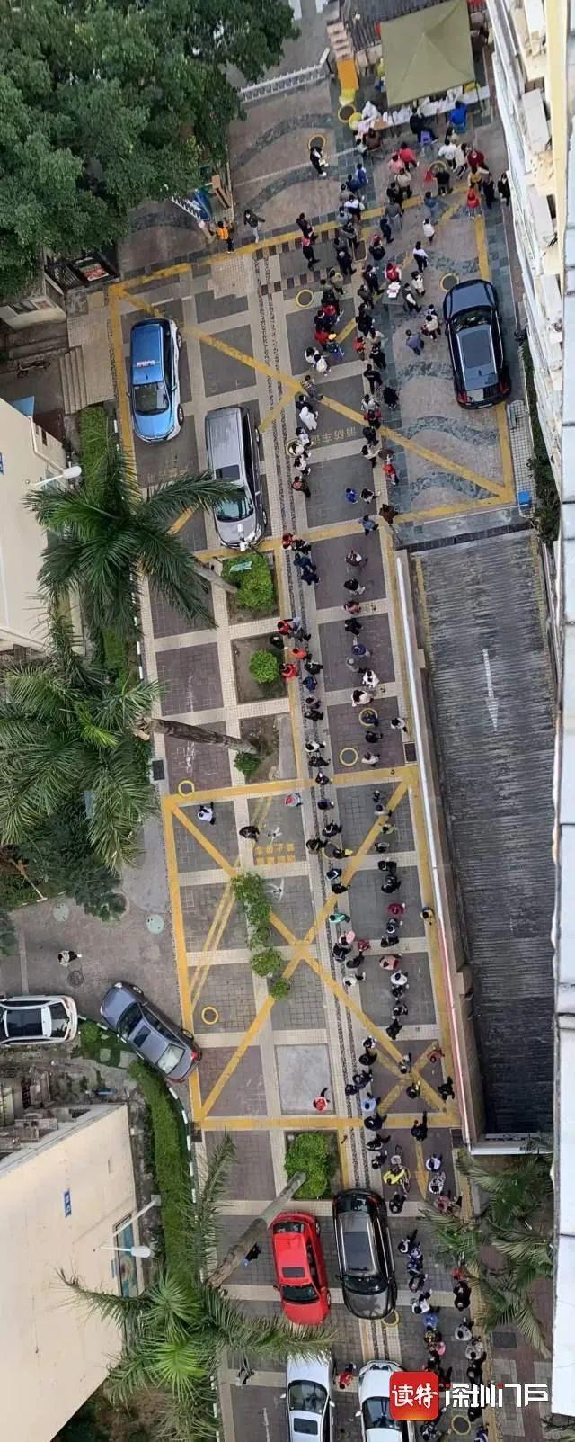 ▲布吉街道國展社區(qū)居民有序排隊(duì)做核酸