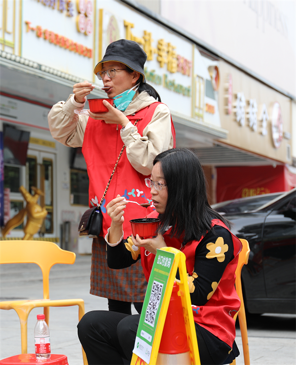 “收到臘八粥很暖心,也很好吃,非常感謝?!贝渲窠值浪惼瑓^(qū)防疫工作者們一邊津津有味吃著,一邊對記者說道:“我們會一如既往地堅守崗位,為市民筑牢疫情防控的‘銅墻鐵壁’。”