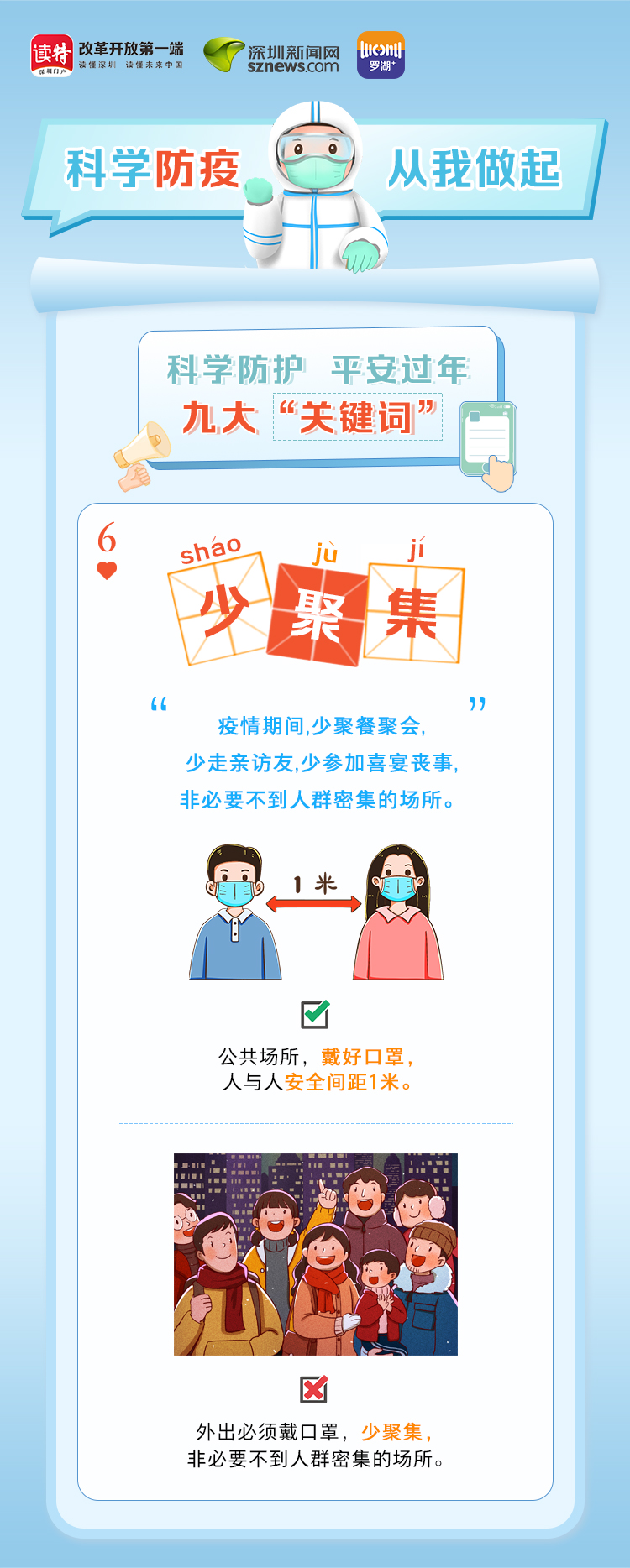 為更好地保護(hù)自己和他人的健康,度過一個祥和平安的春節(jié),請查收《科學(xué)防護(hù)平安過年九大“關(guān)鍵詞”》。在這場沒有硝煙的戰(zhàn)斗中,公安干警、醫(yī)護(hù)人員、社區(qū)工作者、志愿者始終堅守在一線,齊心協(xié)力、眾志成城抗擊疫情。讓我們攜手并進(jìn),共同抗疫,采用科學(xué)有效的方式做好自身防護(hù),不僅對自己負(fù)責(zé),更是對家人負(fù)責(zé),對社會負(fù)責(zé)。