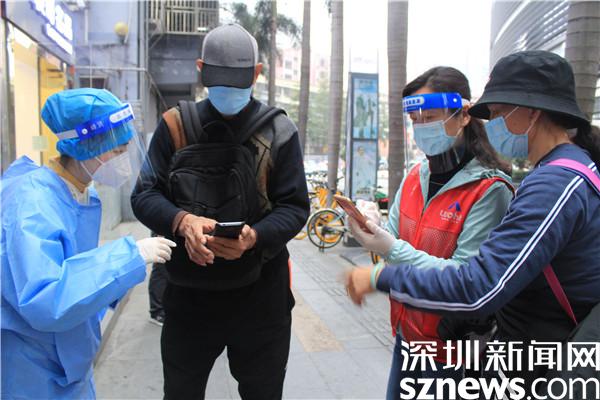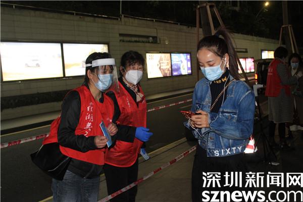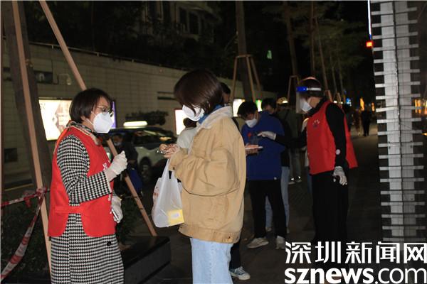 “楊妹,我來了,還帶來了一個人。”13日晚,正在羅湖區(qū)桂園街道老圍社區(qū)禧程酒店核酸檢測點忙碌的社工楊女士,接到志愿者溫寶珍的電話。溫寶珍從“0107疫情”開始以來,每天都在核酸檢測點協(xié)助核酸檢測,這晚她把自己的兒媳婦吳永霞也帶來了?!捌牌艅倧钠渌鐓^(qū)的核酸檢測點做完義工回來,聽說老圍社區(qū)需要人,放下飯碗就來了。婆婆這么大年紀(jì)了還沖在前面,我做兒媳婦的,怎么也要向婆婆學(xué)習(xí)啊?!眳怯老紝ι绻ふf。“應(yīng)該的應(yīng)該的,疫情當(dāng)前,每個人都有義務(wù)出來與病毒作戰(zhàn),光是靠社區(qū)工作者不行,他們太累了。”溫寶珍邊說邊幫兒媳穿好義工服,把粵核酸的二維碼交給兒媳,并教兒媳如何在手機上查驗。