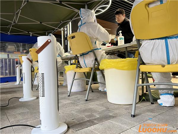 十分鐘后,物資配送車輛來到萬科里核酸檢測點(diǎn),工作人員將熱乎乎的姜茶送到工作人員手中,并熟練地尋找合適的地方架起暖風(fēng)機(jī)?!皬闹苣┑呐瘜殞?,到今天的暖風(fēng)機(jī),暖心行動(dòng)一再升級(jí),感覺很驚喜?!绷_湖醫(yī)院護(hù)士劉新媚向記者說道,目前疫情防控工作任務(wù)艱巨,檢測點(diǎn)周末也在連續(xù)運(yùn)轉(zhuǎn),但街道及時(shí)的物資保障,讓所有一線人員都感覺很暖心。