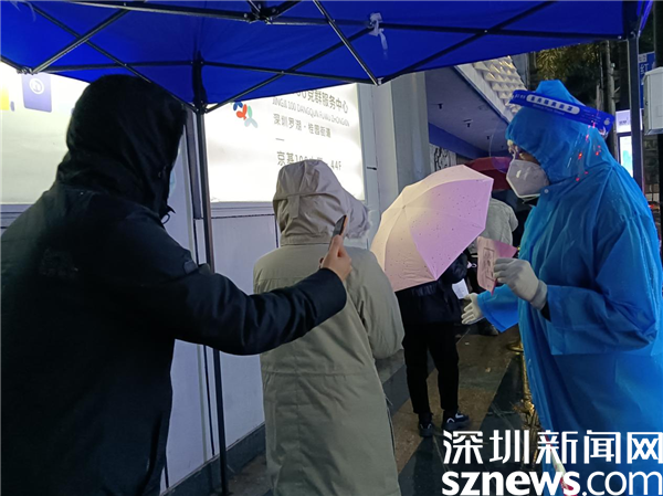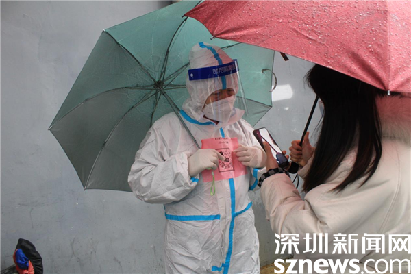 讀特客戶端·深圳新聞網2022年2月24日訊(記者 劉嘉敏 通訊員 楊紀歐)雖然這幾天的冷風冷雨一直不停,氣氛低至6度,但深圳市羅湖區(qū)桂園街道老圍社區(qū)設在各處的核酸檢測點一直在有序進行著。人們打著雨傘排隊,社區(qū)工作人員和志愿者高效地引導,讓等候的人快速地采樣,協(xié)助不會操作的人出示粵核酸碼。工作人員的手腳都凍僵了,但沒有人退縮,用自己的“凍”起來,守護著深圳人的綠碼,捍衛(wèi)著社區(qū)的平安。