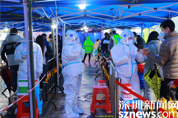 讀特客戶端·深圳新聞網(wǎng)2022年2月25日訊(記者 吳艷 通訊員 蔡歡 黃利生)連日來氣溫驟降,風雨交加,然而在羅湖區(qū)東曉街道的大街小巷上,還有這樣一群人,他們身穿防護服,把守在各個路口和小區(qū)門口,查驗居民“雙碼”;他們頂著風雨,挨家挨戶上門動員居民核酸檢測;他們晝夜不停,打電話、核數(shù)據(jù),確保核酸檢測不漏一人;他們在6、7度的寒冷天氣里堅守核酸檢測點,引導居民有序排隊檢測核酸。這些抗疫一線工作者,猶如一道道銅墻鐵壁,鑄起守衛(wèi)轄區(qū)群眾生命健康的安全防線。