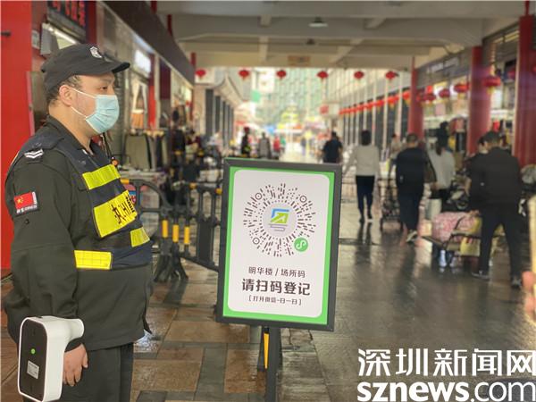 在明華廣場關(guān)口處,工作人員嚴(yán)格督促進(jìn)樓的市民游客佩戴口罩、測量體溫、掃場所碼、驗48小時核酸證明等。記者還注意到,市場每個店鋪門口顯眼處均貼有場所碼。據(jù)東門街道相關(guān)負(fù)責(zé)人介紹,接下來市場會加強防控措施,備足防疫物資,每天定時開展全面消毒。