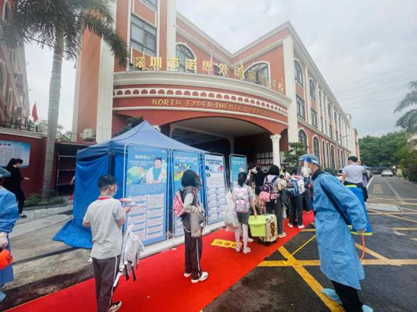 讀特客戶端·深圳新聞網(wǎng)2022年4月13日訊(記者 吳艷 通訊員 魏次開)風(fēng)和日暖,樹翠草青。經(jīng)歷了大約兩個(gè)月的網(wǎng)課,學(xué)生們終于迎來了復(fù)學(xué)返校之日,回到了闊別已久的校園。為做好疫情防控工作,同時(shí)為孩子打造獨(dú)特驚喜的返校體驗(yàn),做好線上線下課程的銜接過渡,深圳市諾思外語實(shí)驗(yàn)學(xué)校的老師們精心準(zhǔn)備,事事親為。下面就讓我們一起去看看老師都為學(xué)生們準(zhǔn)備了哪些花式百出的驚喜現(xiàn)場(chǎng)吧!