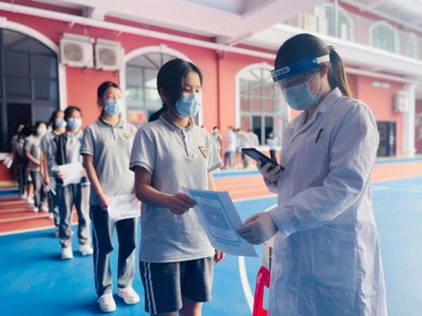 進(jìn)入闊別已久的校園,興奮和激動(dòng)的心情溢于言表,提前兩天入校的初三年級(jí)學(xué)生做出了表率:用餐隊(duì)伍一米距,透明隔斷搭建的用餐區(qū)明亮又溫馨;課間時(shí)間在班主任的帶領(lǐng)下,大家排隊(duì)測(cè)核酸,安靜、有序的隊(duì)伍讓“大白”對(duì)學(xué)生點(diǎn)贊。少年已歸,向陽而生;不忘初心,逐夢(mèng)而行。這個(gè)夏天,老師帶領(lǐng)著學(xué)生們一邊防疫,一邊學(xué)習(xí),合力同行,一起向未來!