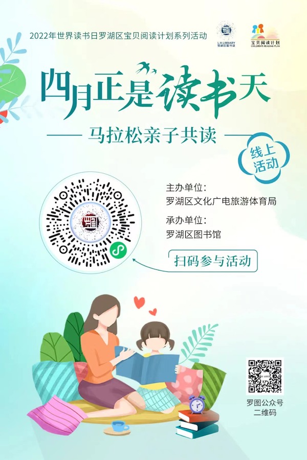 讀特客戶端·深圳新聞網(wǎng)2022年4月23日訊(記者 覃鈺清)芳華萬卷,閱見春天。4月23日是第27個世界讀書日以及第七個深圳未成年人讀書日。“以讀書為榮,以讀書為樂,以讀書為用”早已融入這深圳的文化基因。在這個書香馥郁的四月,羅湖區(qū)圖書館精心策劃了親子共讀、語言培訓(xùn)、電影配音、有獎競答等六大主題活動,助力全民閱讀,為“灣區(qū)樞紐萬象羅湖”注入源源不斷的書香活力。