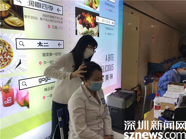 5月1日下午,老圍社區(qū)黨委書(shū)記許少瓊來(lái)到KKMALL商場(chǎng)負(fù)一樓的疫苗接種點(diǎn),看望現(xiàn)場(chǎng)的工作人員和醫(yī)務(wù)人員,檢查當(dāng)天的疫苗接種情況,并與工作人員一起動(dòng)員來(lái)往行人進(jìn)行加強(qiáng)針的接種。當(dāng)她聽(tīng)說(shuō)負(fù)責(zé)登記的醫(yī)生因?yàn)榱苡曛鴽龆^疼得厲害,卻還在默默堅(jiān)持時(shí),許少瓊立刻走到醫(yī)生的身后,為醫(yī)生按摩頭部。被按摩的醫(yī)生一再說(shuō),“很舒服,輕松了很多?!逼鋵?shí),這一天,連續(xù)工作4個(gè)月無(wú)休的許少瓊,身體也不是很好,但她用堅(jiān)強(qiáng)的毅力壓抑了身體的不適,以一貫的積極樂(lè)觀影響帶動(dòng)著身邊的同事。