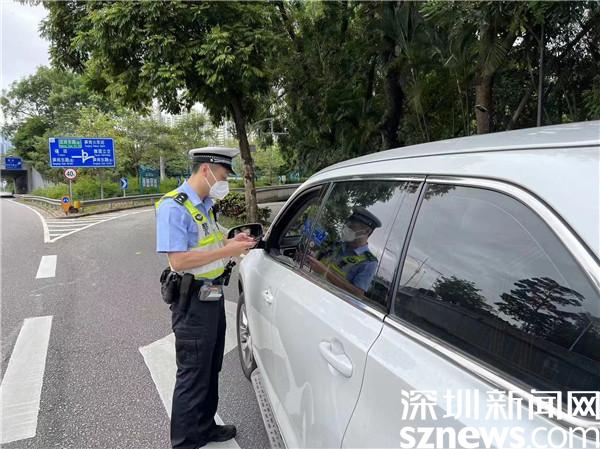 5月24日下午,羅湖交警大隊(duì)機(jī)訓(xùn)中隊(duì)組織警力在人民公園路開展卡口專項(xiàng)整治行動(dòng)期間,發(fā)現(xiàn)一輛車牌號(hào)為粵S7***9的小車涉嫌多次違法未處理,于是立即示意該車駕駛員靠邊停車接受檢查。