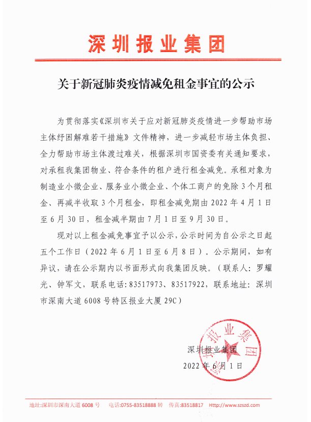 附件:深圳報業(yè)集團2022年物業(yè)出租“三減三免”租戶名單