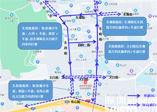 交通壓力測試。5月21日,在羅湖交警大隊協(xié)助下,東昌路等片區(qū)道路實施小范圍單循環(huán)壓力測試,通過06:00-11:00時段單循環(huán)交通運行情況,及時發(fā)現(xiàn)單循環(huán)交通組織方案現(xiàn)場實施存在的不足并加以改進(jìn)。