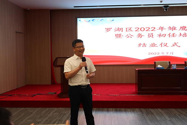 結(jié)業(yè)儀式上,區(qū)委組織部常務(wù)副部長高延勇對此次羅湖區(qū)“雛鷹訓(xùn)練營”取得的成效給予了充分肯定,對各位學(xué)員通過一個月培訓(xùn)取得的進(jìn)步和成長表示了祝賀,并從5個方面對羅湖“雛鷹”提出了殷殷期望:一是提高政治意識,把自身工作融入到區(qū)委區(qū)政府中心工作中去,強(qiáng)化責(zé)任心,增強(qiáng)年輕干部使命感;二是爭做“先鋒者”,積極踐行羅湖“先鋒精神、奮斗文化”,敢于爭先,勇于擔(dān)當(dāng);三是增強(qiáng)創(chuàng)新創(chuàng)造意識,發(fā)揮年輕人的優(yōu)勢,多做“無中生有”的事情,多做示范引領(lǐng)的工作;四是提升戰(zhàn)略思維,胸懷“國之大者”,善于從大局出發(fā)思考問題、謀劃工作;五是保持廉潔自律,從入職一開始就緊繃廉潔從政這根弦,努力成為心中有“秤”的年輕干部。