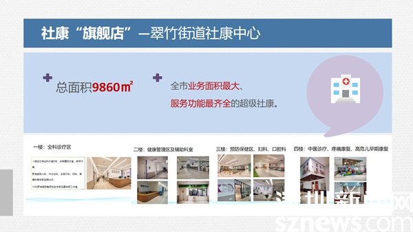 2021年3月,全市業(yè)務(wù)面積最大、服務(wù)功能最齊全的羅湖醫(yī)院集團翠竹街道社康中心投入使用。總面積9860平方米共有4層,分設(shè)不同功能區(qū)。一樓為診療區(qū),涵蓋全科診療區(qū)、專家工作室、醫(yī)學(xué)影像檢查區(qū)等;二樓為健康管理區(qū),為居民提供全周期的健康體檢及檢后健康管理服務(wù),還設(shè)有超聲、檢驗、DR等科室;三樓為預(yù)防保健區(qū),口腔科、婦科,四樓為高危兒早期康復(fù)中心、名中醫(yī)館、中醫(yī)康復(fù)理療區(qū)。