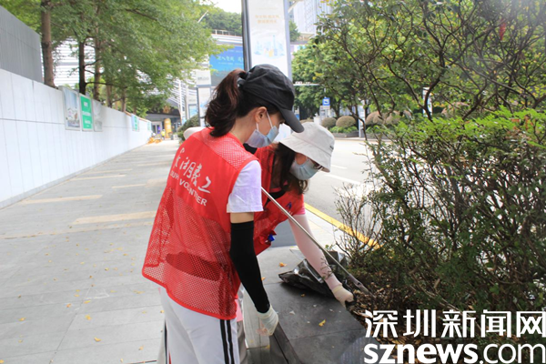 老圍社區(qū)蔡屋圍村民黃元娣和李梅英一組,她們平時(shí)是好姐妹,服務(wù)社區(qū)是好隊(duì)友。兩個(gè)人負(fù)責(zé)大劇院周?chē)沫h(huán)境衛(wèi)生,毫不吝惜體力,花壇里的垃圾用垃圾夾不方便,就干脆用手抓。