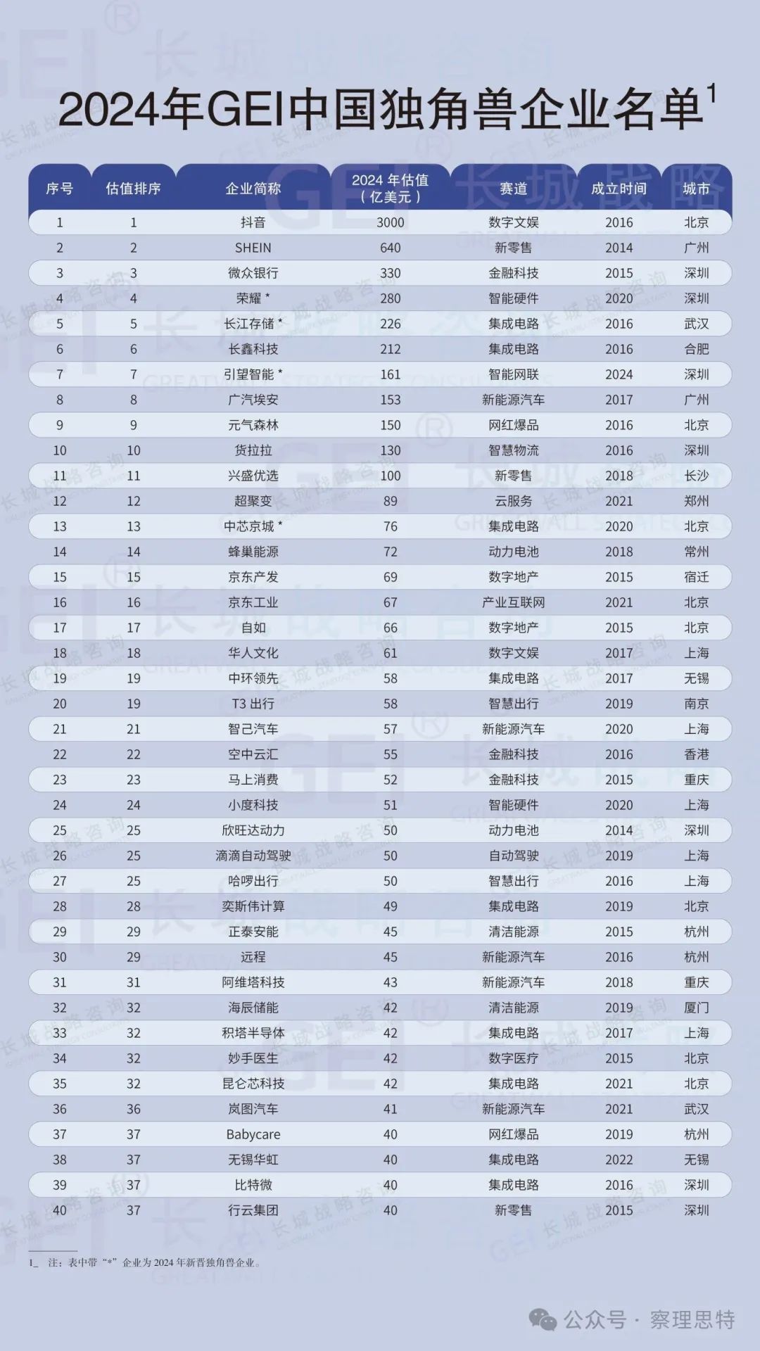 ▲《2024年GEI中國獨角獸企業(yè)名單》(部分)