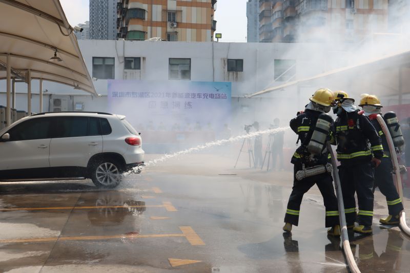 2021年9月15日上午,深圳市羅湖區(qū)發(fā)展和改革局在喜立快充充電站組織開展2021年新能源汽車充電場站應急演練,區(qū)應急管理局、東曉街道辦、羅湖區(qū)消防救援大隊等23個職能部門相關負責人和羅湖區(qū)新能源汽車充電樁運營企業(yè)負責人進行了參演和現(xiàn)場觀摩。