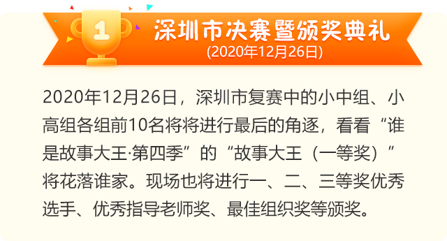 讓閱讀成為動人的風(fēng)景,讓故事的魅力感動深圳。為助力建設(shè)良好的青少年閱讀環(huán)境,激發(fā)學(xué)生閱讀興趣,倡導(dǎo)親子閱讀,共建和諧家庭關(guān)系。2020年,第二十一屆深圳讀書月主題活動“誰是故事大王·第四季”在共青團深圳市委員會、深圳市關(guān)愛行動組委會辦公室的指導(dǎo)下再出發(fā)。更長的活動周期,更豐富的參與形式,更專業(yè)的賽制,“誰是故事大王·第四季”等你來解鎖與挑戰(zhàn)!