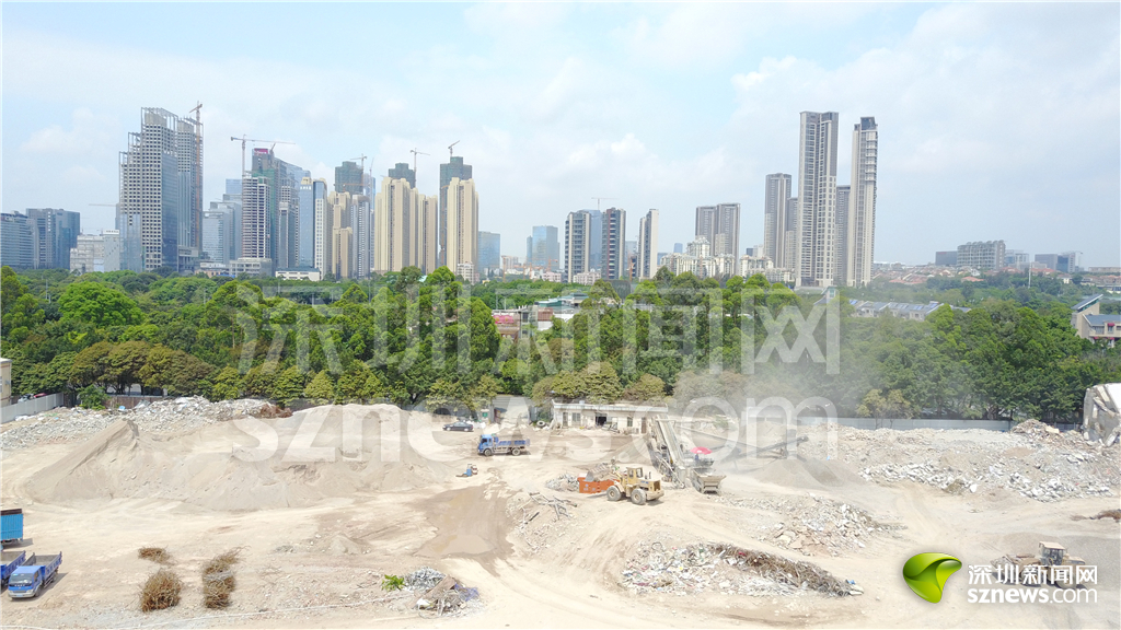 白石洲城中村內(nèi)的建筑工地,“握手樓”群被推倒,白石洲正在升級