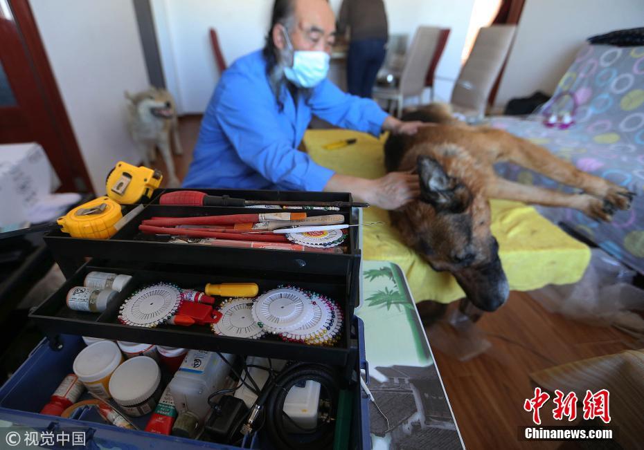 2018年春節(jié)期間,前往北京市朝陽(yáng)區(qū)高碑店鄉(xiāng)大黃莊社區(qū)甲3號(hào)的人絡(luò)繹不絕,他們來(lái)這里的目的,就是為了讓自己的愛(ài)犬“重生”。這家店的主人名叫老郭,是一位動(dòng)物標(biāo)本制作師,他對(duì)來(lái)客常說(shuō)的一句話就是:“你帶著躺下了的寵物來(lái),我還你一個(gè)站起來(lái)的它”。圖為郭元虎正在制作狗標(biāo)本。文字來(lái)源:法制晚報(bào) 圖片來(lái)源:視覺(jué)中國(guó)