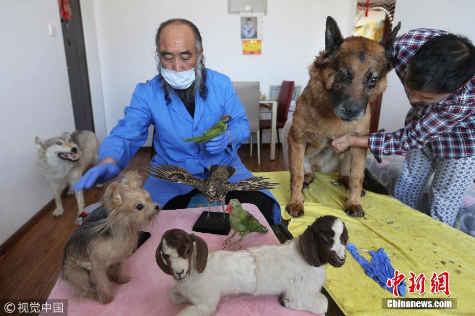 狗年到來(lái),來(lái)找他將離世的愛(ài)犬和其他寵物做成標(biāo)本的人絡(luò)繹不絕,動(dòng)物們就這樣老郭手中復(fù)生。據(jù)老郭介紹,進(jìn)入狗年,他接到了幾位主人送來(lái)的三只過(guò)世狗狗來(lái)做標(biāo)本。從20歲出頭開(kāi)始制作第一只貓頭鷹標(biāo)本以來(lái),在老郭手下復(fù)生的動(dòng)物大到汗血賽馬、獅子、野豬,小到蜂鳥(niǎo),近些年僅制作賽馬標(biāo)本就有50匹,其它的寵物標(biāo)本有數(shù)千余件。文字來(lái)源:法制晚報(bào) 圖片來(lái)源:視覺(jué)中國(guó)