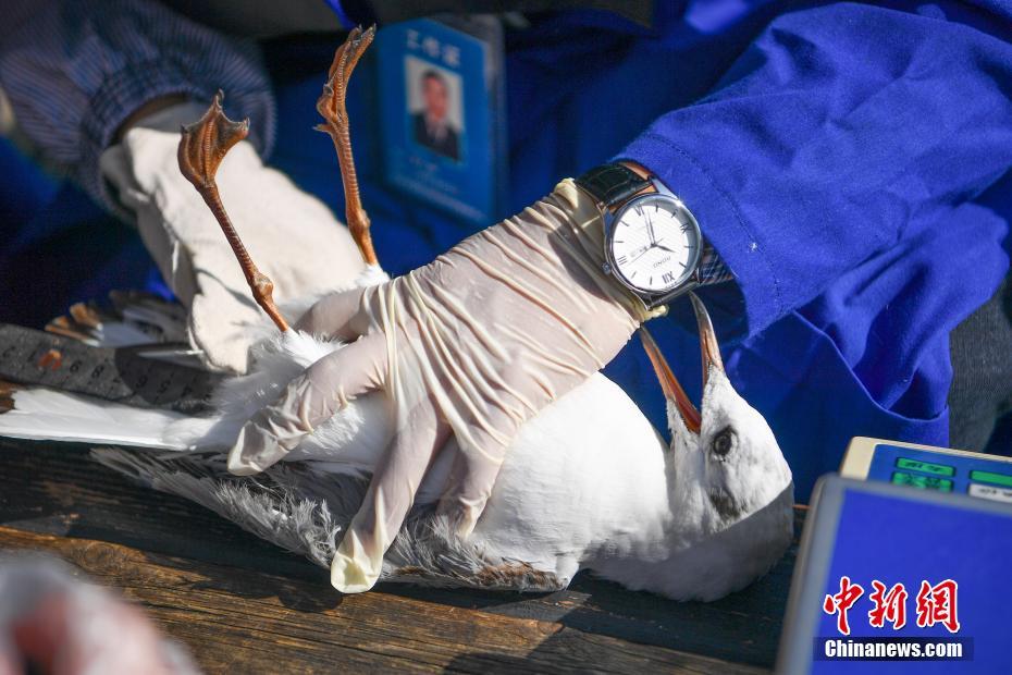 工作人員介紹,環(huán)志的目的在于了解紅嘴鷗種群數(shù)量變化情況及身體狀況,更好地為候鳥遷徙研究和野生動物疫源疫病監(jiān)測工作服務。中新社記者劉冉陽 攝