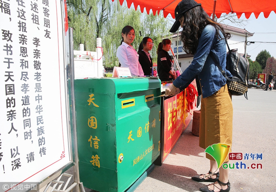 在鳳棲山人文紀(jì)念園,擺放了一個(gè)巨大的“天國(guó)信箱”。如果前來祭掃的市民有對(duì)逝去親人想說的話,想表達(dá)的哀思,可以寫一封信,投入天國(guó)信箱。憑著寫給親人的信,祭奠者可在墓園領(lǐng)到一枝鮮花和一條絲帶,然后帶入墓園紀(jì)念自己的親人。