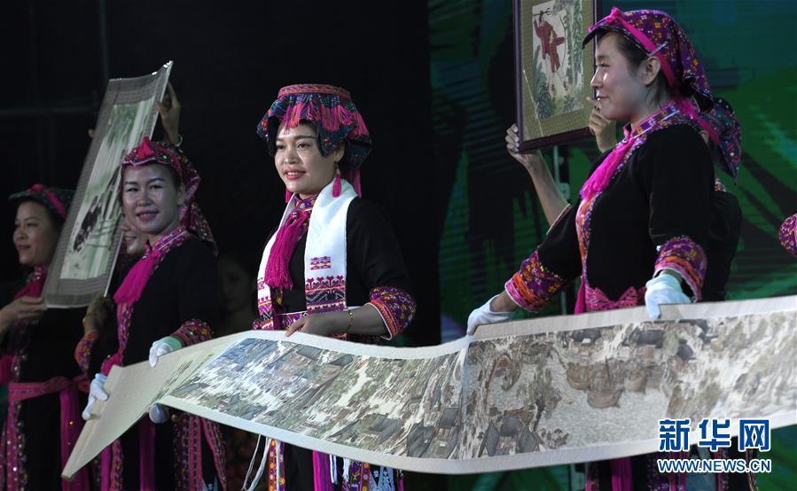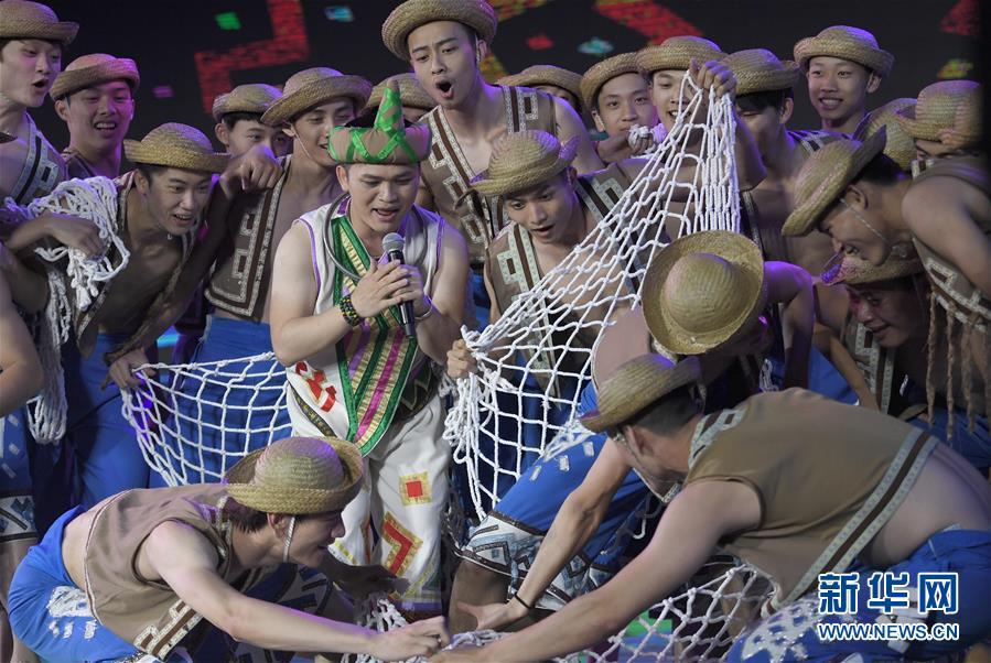 4月18日,在海南省五指山市,演員們表演節(jié)目慶?!叭氯?。當日是農(nóng)歷三月初三,海南省黎族苗族同胞齊聚五指山市,歡慶“三月三”。新華社記者 趙穎全 攝