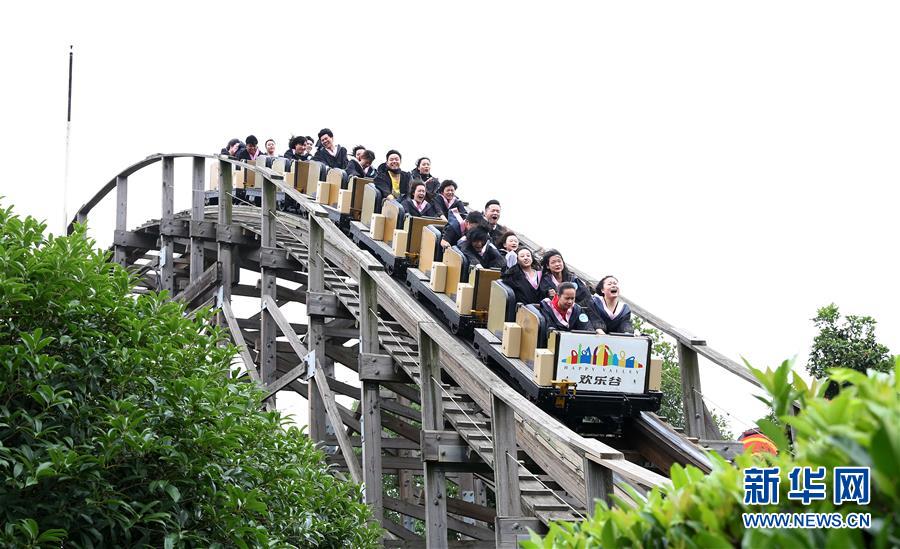 當日,來自上海10余所高校的近80名應(yīng)屆大學本科畢業(yè)生來到上海歡樂谷,參加在這里舉行的過山車畢業(yè)禮活動。