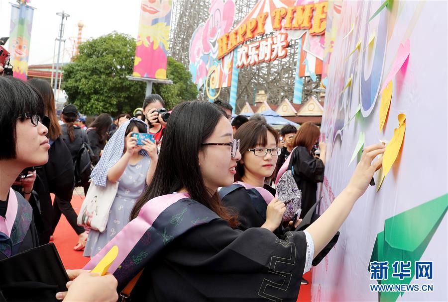 6月10日,畢業(yè)生們在歡樂谷廣場上拍合影。