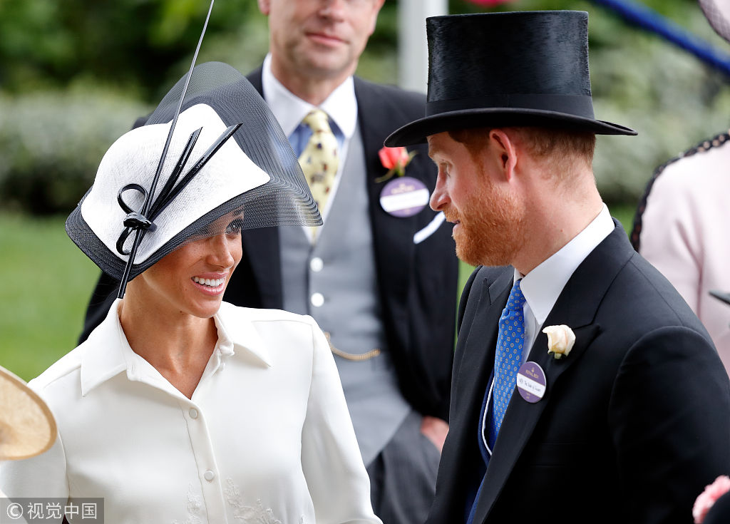 當(dāng)?shù)貢r間2018年6月19日,英國阿斯科特,英國阿斯科特皇家賽馬會首日,梅根王妃出席皇家賽馬會。