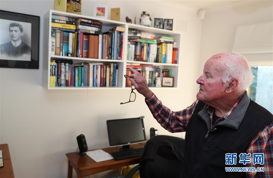 在澳大利亞最古老的唐人街——墨爾本唐人街深處,隱藏著一棟五層紅磚小樓,澳華歷史博物館就坐落在這里。1818年,來(lái)自廣東的麥?zhǔn)烙⒃诮芸诉d港下船,成為有記載的最早一批來(lái)澳華人移民中的一員。19世紀(jì)50年代,伴隨著淘金熱,不少華工出現(xiàn)在澳大利亞的金礦里?,F(xiàn)在,澳大利亞的華裔人口已超過(guò)100萬(wàn),中文僅次于英文成為澳大利亞使用人數(shù)第二多的語(yǔ)言。圖為巴里·世英在家中回憶自己的父親馬丁·世英(2018年6月22日攝)。居住在墨爾本郊外20多公里的布萊克羅克小鎮(zhèn)上的八旬老人巴里·世英就是麥?zhǔn)烙⒌暮笕?。新華社記者白雪飛攝