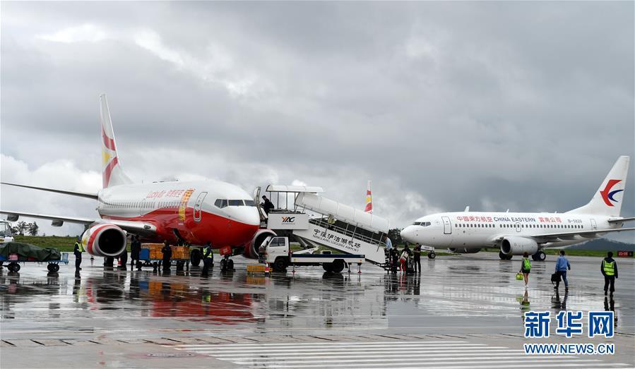 乘客在寧蒗瀘沽湖機場準備乘坐飛機(7月31日攝)。 新華社記者 藺以光 攝