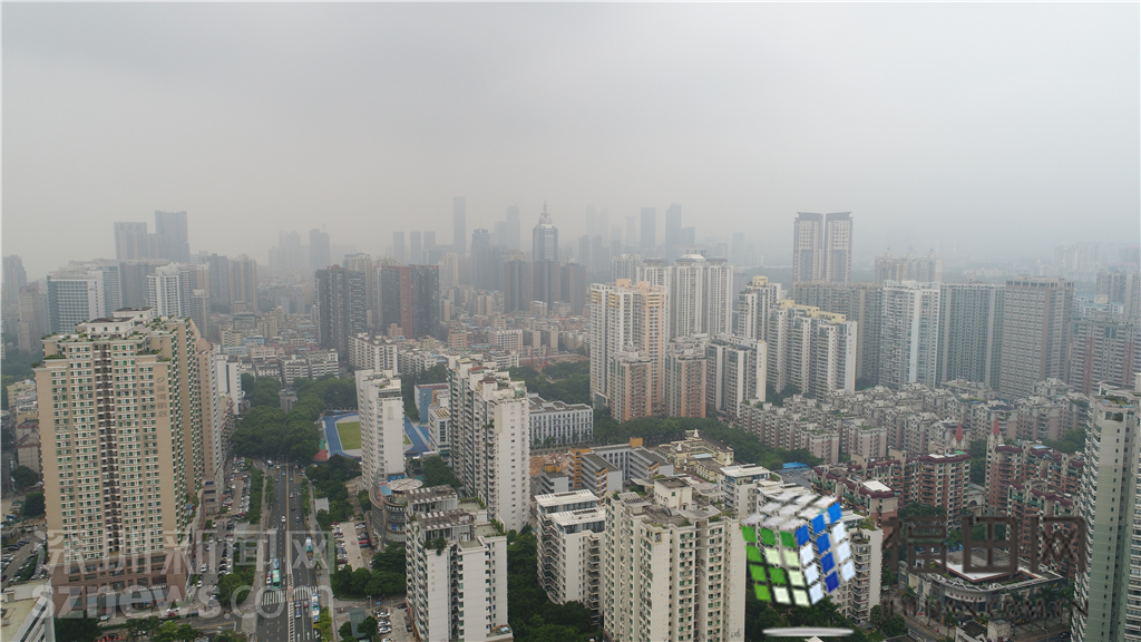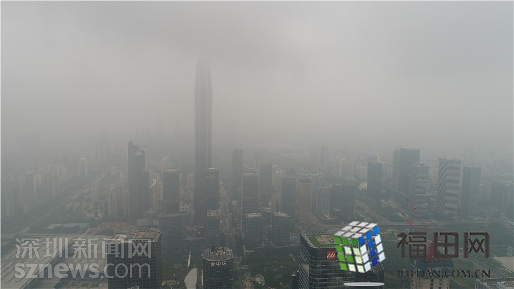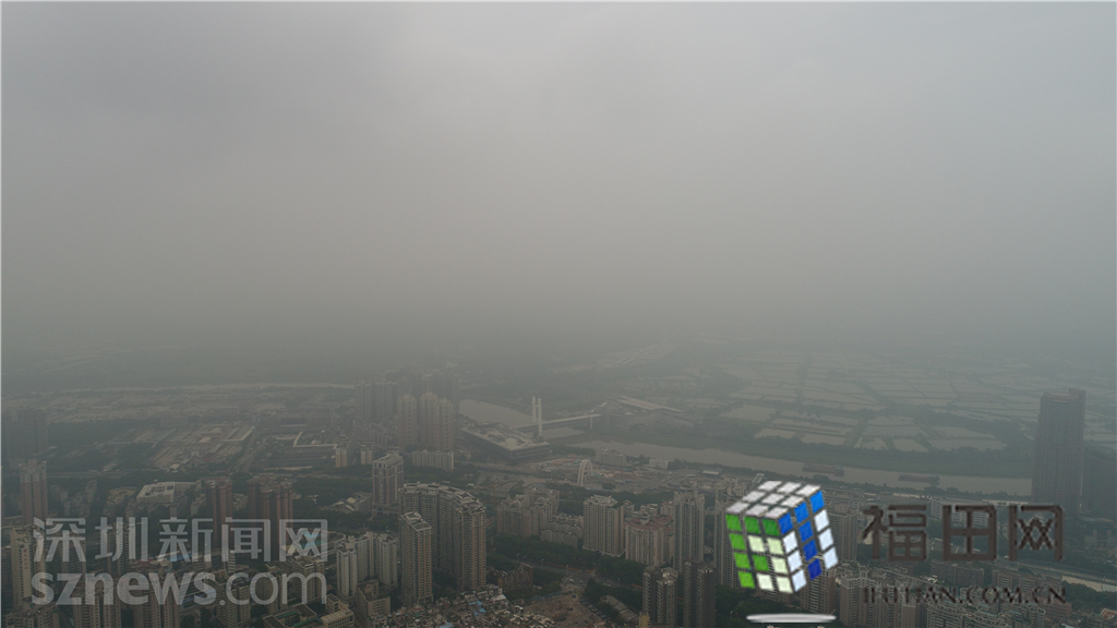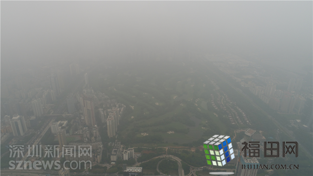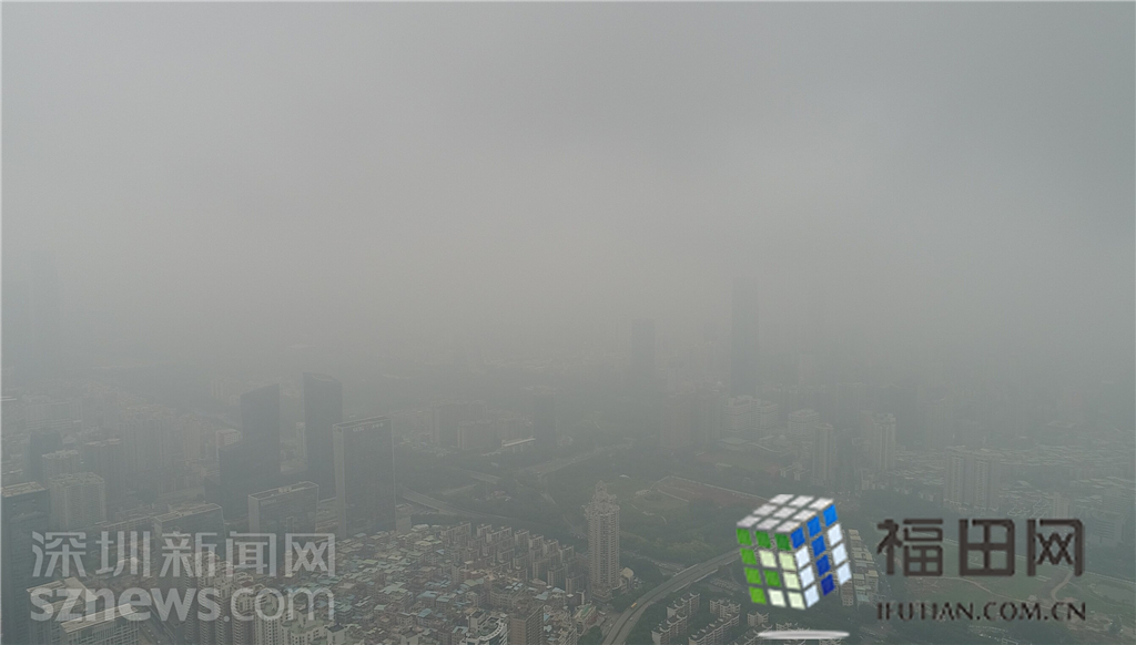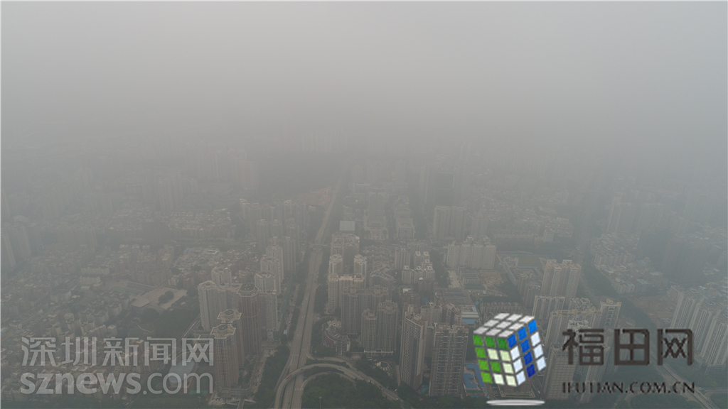 整個福田中心區(qū)都籠罩在灰霾之中。