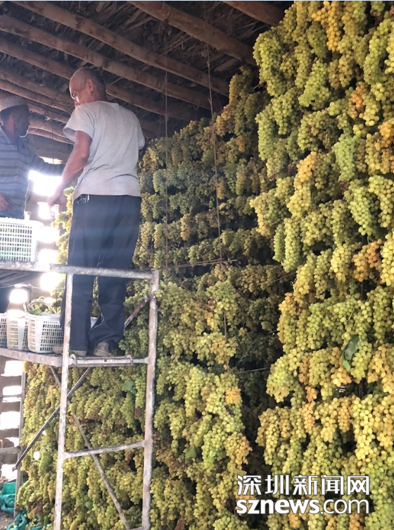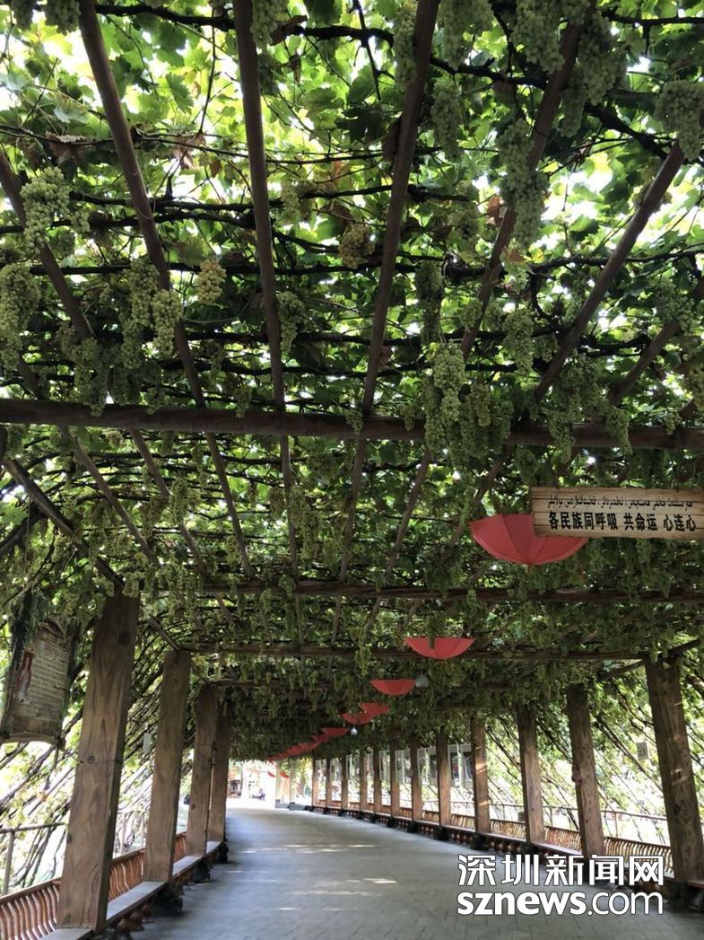 ??? ?深圳新聞網(wǎng)訊? 說(shuō)起吐魯番的葡萄溝,當(dāng)然是因?yàn)槠咸炎钬?fù)盛名。新疆民謠說(shuō):“吐魯番的葡萄哈密的瓜,庫(kù)爾勒的香梨人人夸,葉城的石榴頂呱呱?!钡莱隽诵陆忻乃膫€(gè)水果之鄉(xiāng),吐魯番獨(dú)居榜首。這里的葡萄可是馳名中外,享有盛譽(yù)!?