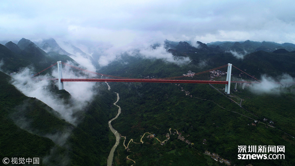 ???深圳新聞網(wǎng)訊 2018年6月26日,一場大雨后貴州省安順市關(guān)嶺縣壩陵河大峽谷云霧繚繞,橫跨兩岸的壩陵河大橋在云霧中時隱時現(xiàn),更顯雄偉壯觀。